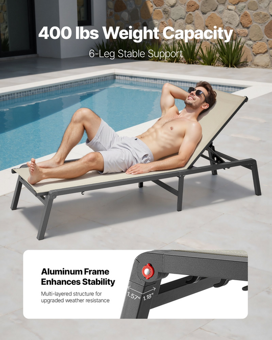 2Pcs Foldable Chaise Lounge Chair Adjustable Back Outdoor Pool Sun Tanning Chair