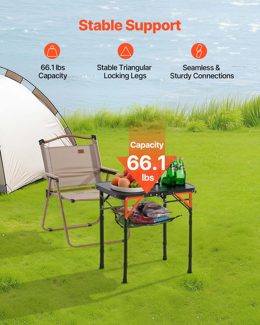 2ft Folding Portable Camping Table Aluminum Outdoor Table Adjustable Height