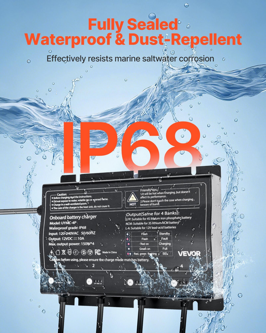 4-Bank 10A 12V Smart Marine Battery Charger Onboard IP68 Waterproof Boat RV