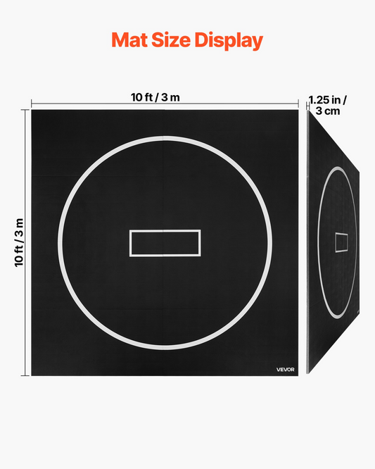 VEVOR 10x10 ft Wrestling Mat, Martial Arts Thick Mat for Home Gym Workouts Exercise, Waterproof PVC Roll-Up Training Mats with Circles, for Gymnastics, Tatami, Jiu Jitsu BJJ MMA Judo, Boxing, Black
