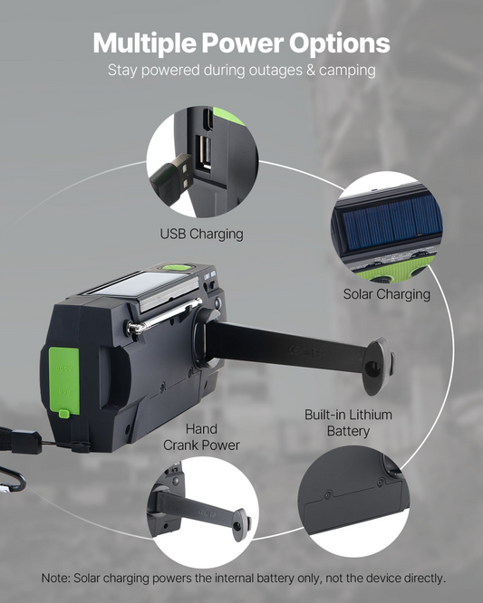 VEVOR Emergency Weather Radio, 4000mAh Battery, FM/AM/WB/NOAA Alert Solar Hand Crank Emergency Radio, with USB Charging Cable, SOS Alarm and Flashlight, Portable for Outdoor Emergencies, Camping
