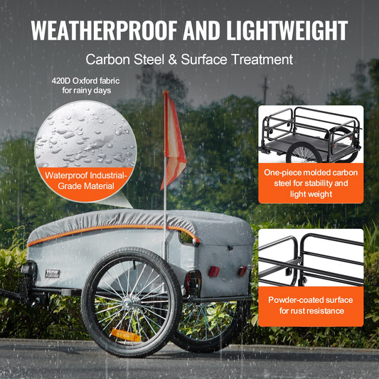VEVOR Bike Cargo Trailer, 100 lbs Load Capacity, Heavy-Duty Bicycle Wagon Cart, Foldable Compact Storage with Universal Hitch, Waterproof Cover, 16" Wheels, Safe Reflectors, Fits 22"-28" Bike Wheels