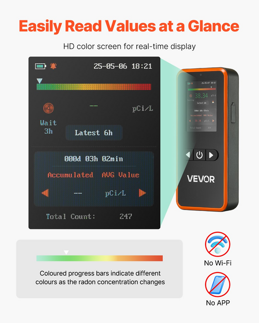Home Radon Detector 3.3Bq to 37kBq/m³ Portable Easy to Use Battery Operated