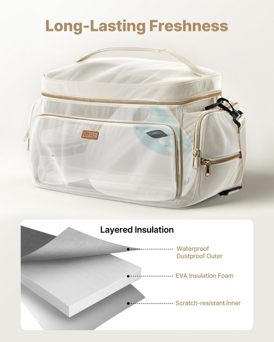 VEVOR Breast Pump Bag, Breast Feeding Bag with Waterproof Mat, Fits for S1/S2, Pumping Accessories & Breastmilk Storage, Portable Pump Carrying Case for Work, Travel and Family Use, Beige