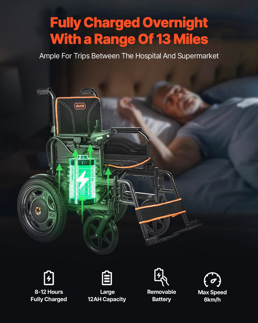VEVOR Electric Wheelchair for Adults, 265lbs Capacity, Foldable & Lightweight Motorized Wheelchair, 13-Mile Long Travel Range, All-Terrain Powered Chair, Portable for Seniors & Disabled