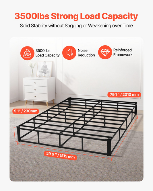 VEVOR Box Spring, Queen Size Bed Frame with Washable Fabric Cloth, Heavy Duty Metal Frame for Queen Bed, 9.1 in Mattress Foundation, 3500 lbs Max Weight Capacity, Easy Assembly, 79.1 x 59.6 x 9.1 in