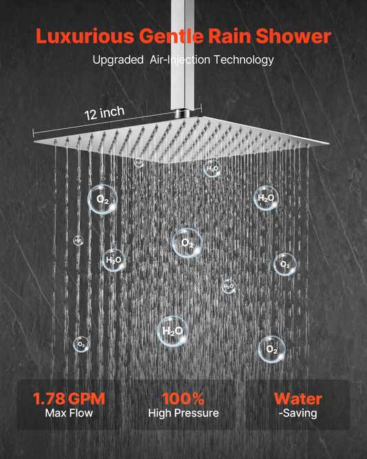 VEVOR Shower Faucet Set, Rainfall Bathroom Shower System with 12-Inch Square Rain Shower Head and Handheld Spray, Ceiling Mount Bath Fixtures with Brass Valve and Trim Kit, Matte Black
