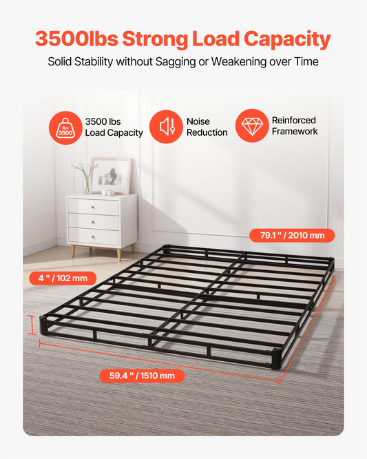 VEVOR Box Spring, Queen Size Bed Frame with Washable Fabric Cloth, Heavy Duty Metal Frame for Queen Bed, 4 in Mattress Foundation, 3500 lbs Max Weight Capacity, Easy Assembly, 79.1 L x 59.4 W x 4 H in