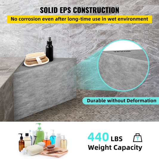 VEVOR Board Shower Bench Rectangle Bench Ready to Tile & Waterproof 47.2x16x20"