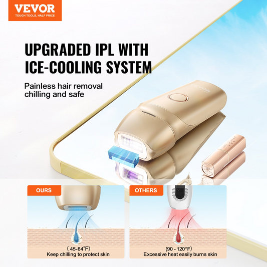 VEVOR IPL Hair Removal, Permanent Hair Removal with Ice Cooling System for Women Men, Auto/Manual Modes & 5 Levels, Painless At-Home Hair Removal Device for Legs, Arms, Armpits, Bikini Line
