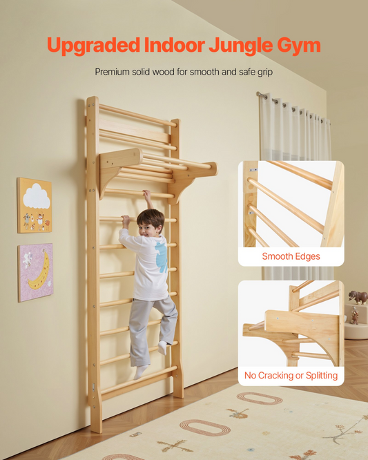 VEVOR Swedish Ladder Wall Gym 10-Level Wooden Indoor Playground Climbing Ladder