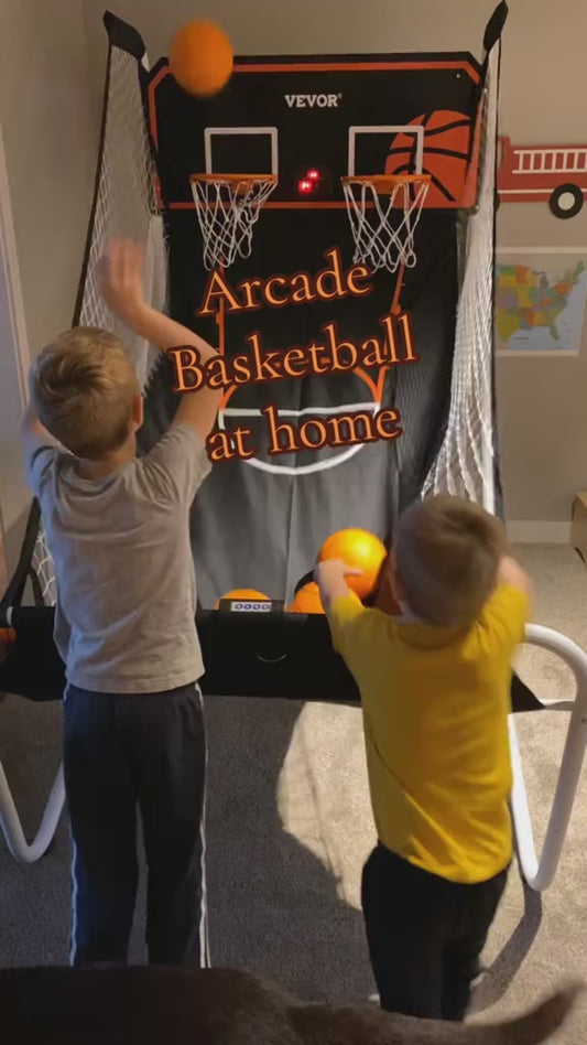 Foldable Basketball Arcade Game, 2 Player Indoor Basketball Game, Home Dual Shot Sport with 4 Balls, 8 Game Modes, Electronic Scoreboard, and Inflation Pump, for Kids, Adults (Black & White)
