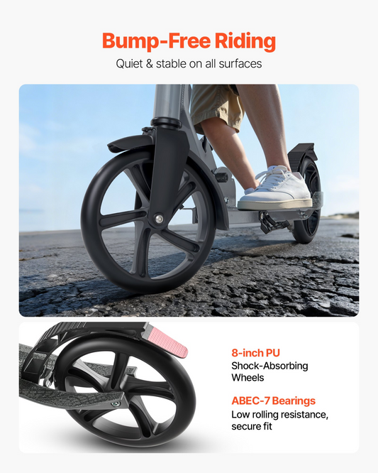 VEVOR Kick Scooter for Kids Ages 8+, Teens & Adults, 2-Wheel Toddler Scooter with Adjustable Height Handlebar, Wide Anti-Slip Deck, Foldable Lightweight Frame for Boys & Girls up to 220 lbs, Gray