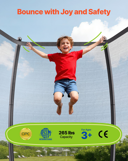 VEVOR Outdoor Trampoline, 8FT Recreational Trampoline, ASTM Approved Trampolines with Enclosure Net & Thickened Pad, Max 265 lbs Weight Capacity, Anti-Rust Backyard Trampolines for Kids & Adults