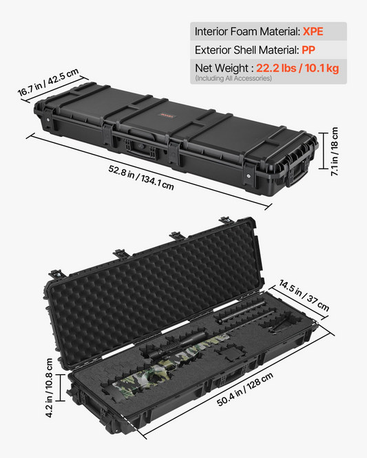 VEVOR Hard Rifle Case, Lockable Rifle Case with Detachable XPE Foam, 50 in Gun Storage with Wheels, IP67 Waterproof & Dustproof Pistol Storage Cases for Rifles, Shotguns, Airsoft Guns, Black