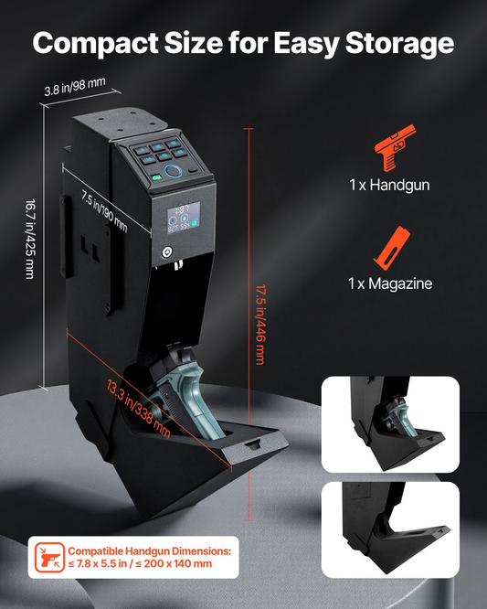 VEVOR Gun Safe, Slider Handgun Gun Safe with Screen, Fingerprint/Password/Key, 3-Way Quick Access Firearm Case Box with LED for 1 Pistol & Magazine, Mounted Gun Box for Nightstand Bedside Desk Car