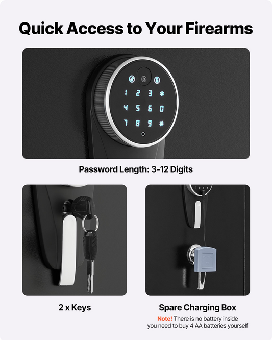 VEVOR 4 Gun Safe, Long Gun Cabinet for Rifles and Pistols, Quick Access Fireproof Rifle Safe with 2 Ammo Slots, 2 Pistol Pockets & 2 Adjustable Racks, Large Digital Cabinet with Key and Password Lock