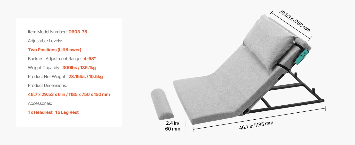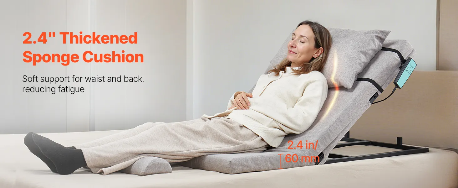 This VEVOR backrest pillow for bed provides comfort and support for reading, watching TV, or relaxing. With an adjustable electric lift that ranges from 4° to 68°, it helps you find the perfect angle for any activity. This bed has a 2.4-inch foam cushion, a stable footrest, and a fixed pillow design. It can support up to 300 lbs due to the cold-rolled steel used in its construction. A smooth motor system with power outage protection provides safe and steady operation. The removable and washable pillow cover keeps your backrest clean and fresh. It blends durability, safety, and comfort into one versatile product.