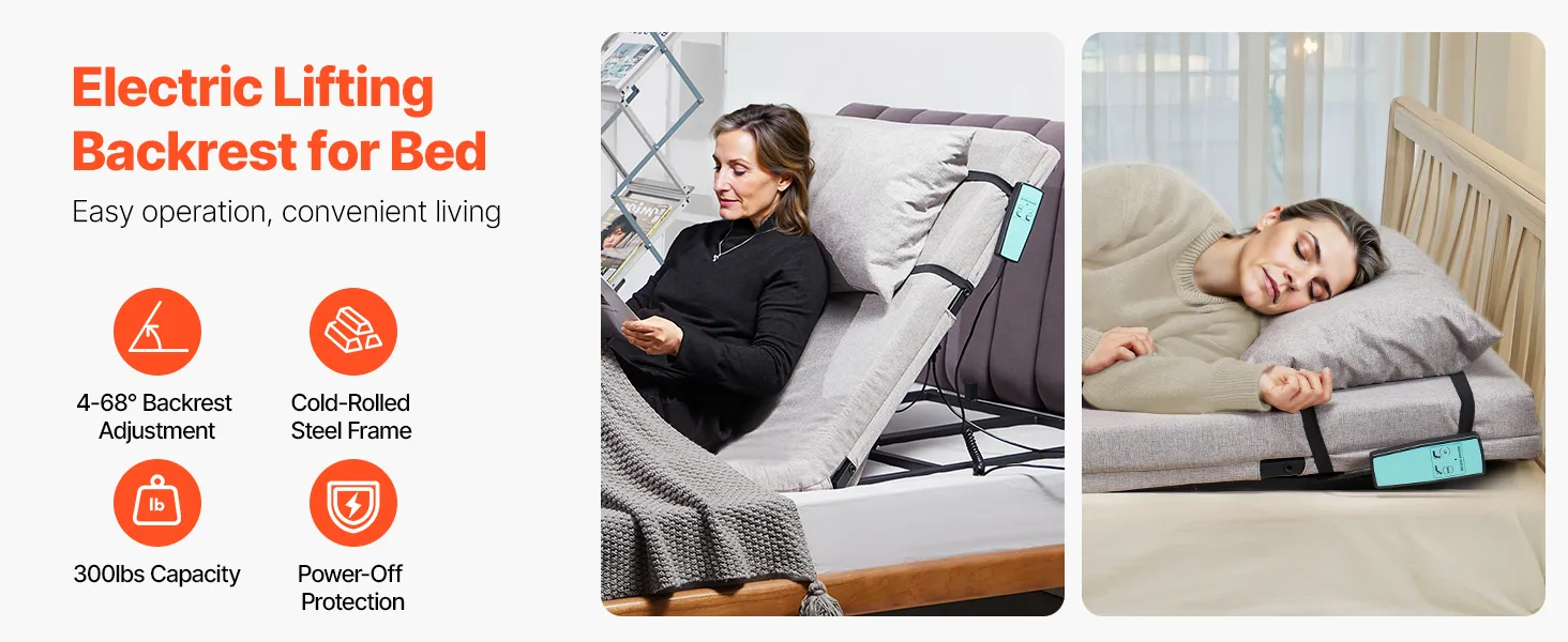 Electric Lifting Backrest 300 lbs 4-68° Adjustable Lifting Bed Backrest
