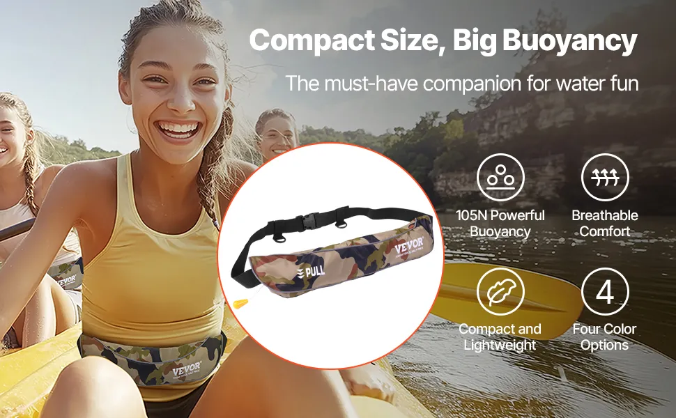 Simply unbuckle the inflatable waist belt pack, slip it on, and adjust it to your desired fit for comfort. In an emergency, pull the cord for rapid inflation or use oral inflation to add extra buoyancy. Ensure fast self-rescue in critical situations, giving you peace of mind on the water.