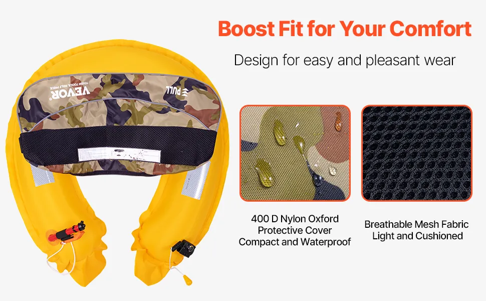- Stay Comfortable, Breathe Easy: Our manual inflatable belt pack combines security, comfort, and ease of use, avoiding the bulky feel of traditional life jackets. Weighing just 0.82 lbs (0.37 kg), made from waterproof 400D Oxford fabric, it keeps you dry, while the mesh lining on the inside helps you stay cool and fresh even in hot summer weather