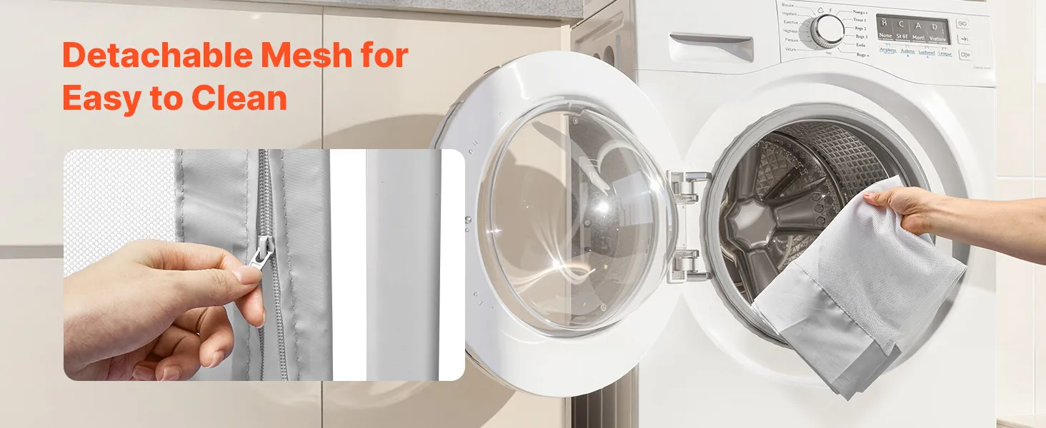 Zip off the mesh panel and toss it in the washing machine for quick, hassle-free care.