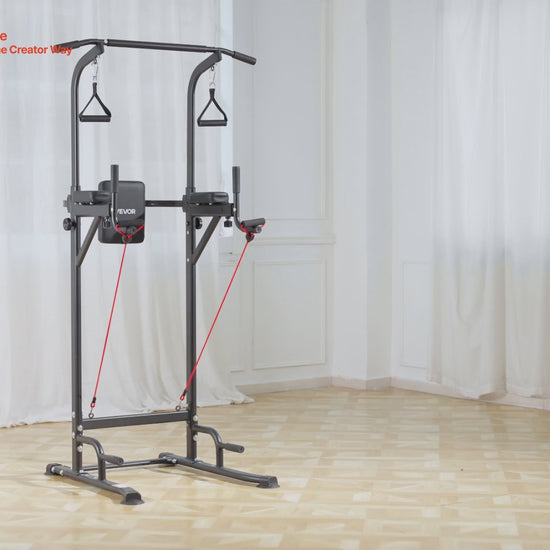 VEVOR Pull Up Bar, 330 LBS Power Tower Dip Station, Workout Dip Station with H-Shaped Stable Base & Back Pad, Adjustable 12 Level Height Free Standing Chin Up Bar for Back, 4-Level Adjustable Back Pad