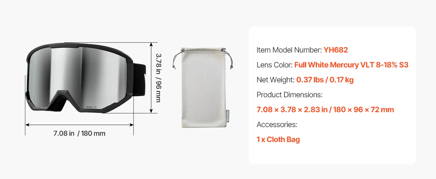 VEVOR Ski Goggles Cylindrical Lens with Silver Mirror Revo Coating Snow Goggles