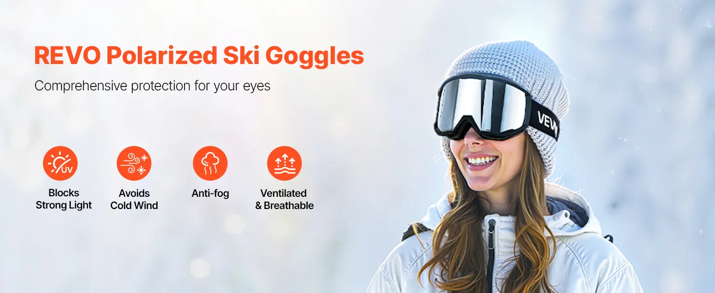 These Revo ski goggles block harsh sunlight and reduce snow glare to help prevent snow blindness. They shield you from cold wind, keep your view fog-free, and maintain fresh airflow so you can enjoy every run with confidence.