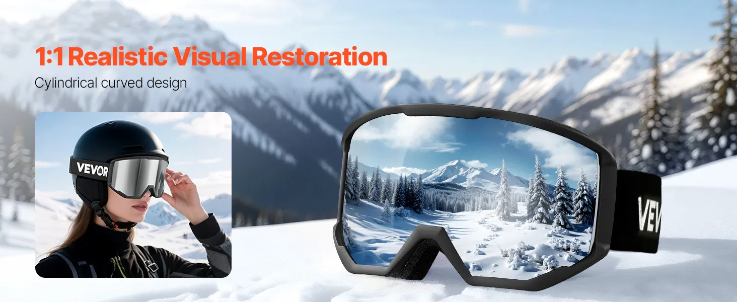 The advanced cylindrical lens of the snow goggles offers true 1:1 distortion-free vision, restoring a natural view of the slopes. The gentle curve reduces visual warping, making it ideal for pro skiers who demand precise terrain judgment.