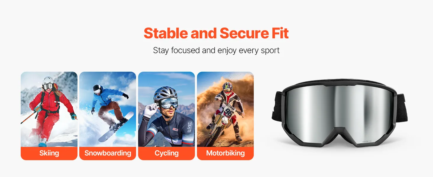 The snug fit hugs your face shape, so the skiing goggles stay in place even during intense activity. Clear, fog-free vision keeps you focused whether you’re skiing, snowboarding, or cycling.