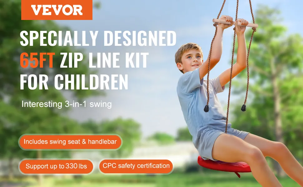- 3-in-1 Variety of Activities: Upgraded configuration includes adding a swing seat and handlebar, allowing for a fun and challenging variety of activities. The zip line kit is made from high-quality finely crafted material, providing peace of mind for children's use. The ergonomically designed swing seat ensures a comfortable ride, allowing you to fully enjoy outdoor fun.