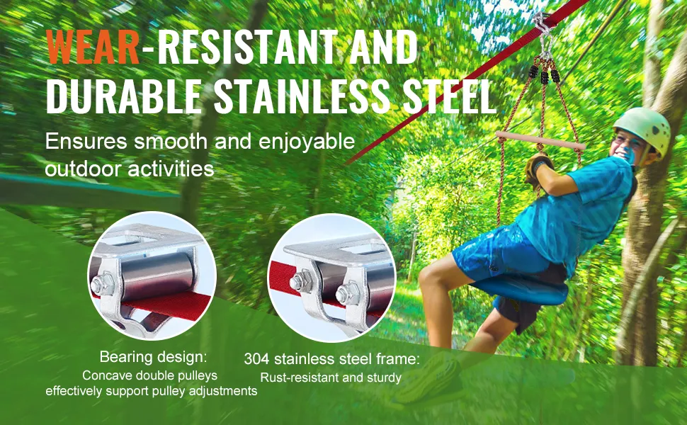 Upgraded ball bearings with reinforced protective steel, eliminating potential dangers. Concave design and polished surfaces reduce rope damage, ensuring safe and stable play.