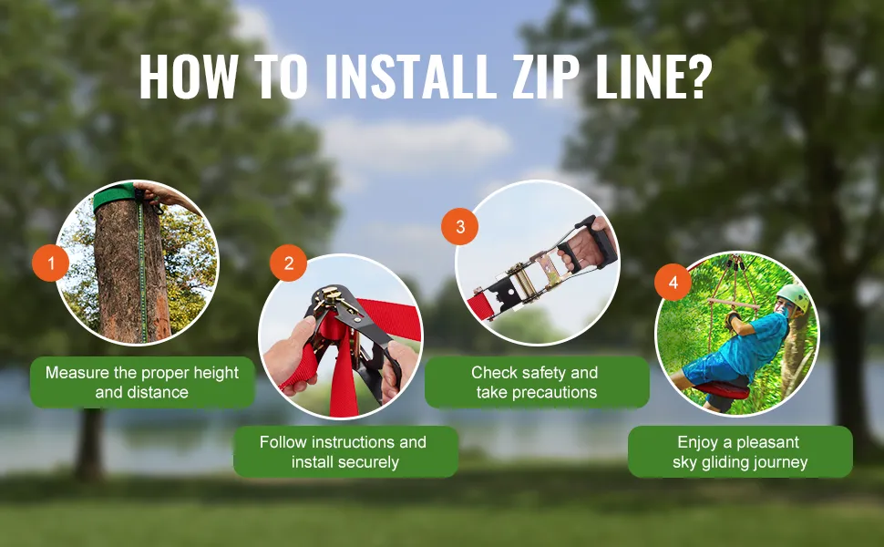 - Easy Installation for Enhanced Safety: Equipped with straps and tensioners, no tools are required for quick and easy installation within 3 minutes. High-quality materials make high-altitude backyard zip line kit safer for both children and adults, with a sturdy construction capable of supporting up to 330 pounds.